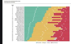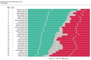 Divulgado na última quarta-feira (17), o novo estudo da AtlasIntel mostra o ranking dos governadores brasileiros em 2025. Mais uma vez, o governador do Amazonas, Wilson Lima (União Brasil) aparece em último lugar na lista dos mandatários mais bem avaliados.