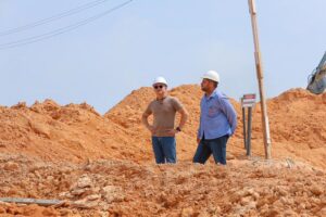 Durante a vistoria, David Almeida também detalhou o robusto trabalho de engenharia que está garantindo a estabilidade da encosta, uma das etapas mais importantes da obra por se tratar de área de alta declividade às margens do fenômeno do Encontro das Águas.